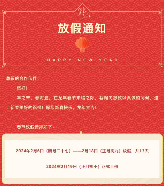 茗熔丨2024龍年春節(jié)放假通知