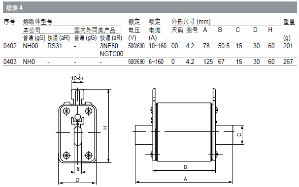 本系列熔斷體適用于交流50Hz、額定電壓至1140V、額定電流至1250A, 主要用在電氣裝置中作線路過載和短路保護(gG/gL) ;還可派生為半導體設備的短路保護(aR) 以及電動機短路保護(aM)。 本系列熔斷體額定分斷能力至120kA。 本系列專用于連接或隔離N 相( 中性點) 的帶有絕緣搭扣的( 裝配于尺碼為00~3的熔斷器底座) 刀形動觸頭( 由銅母線制)供用戶選用。 本系列熔斷體符合國家標準GB13539 和國際電工委標準IEC60269 及EN60269 標準。