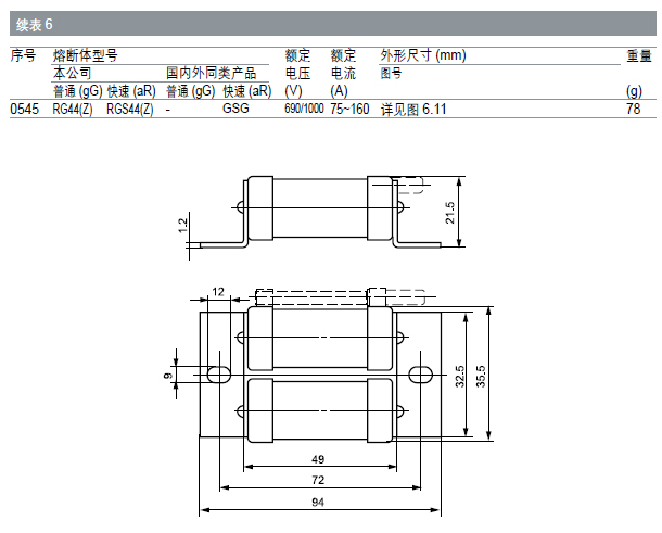 本系列熔斷體額定分?jǐn)嗄芰χ?0kA。