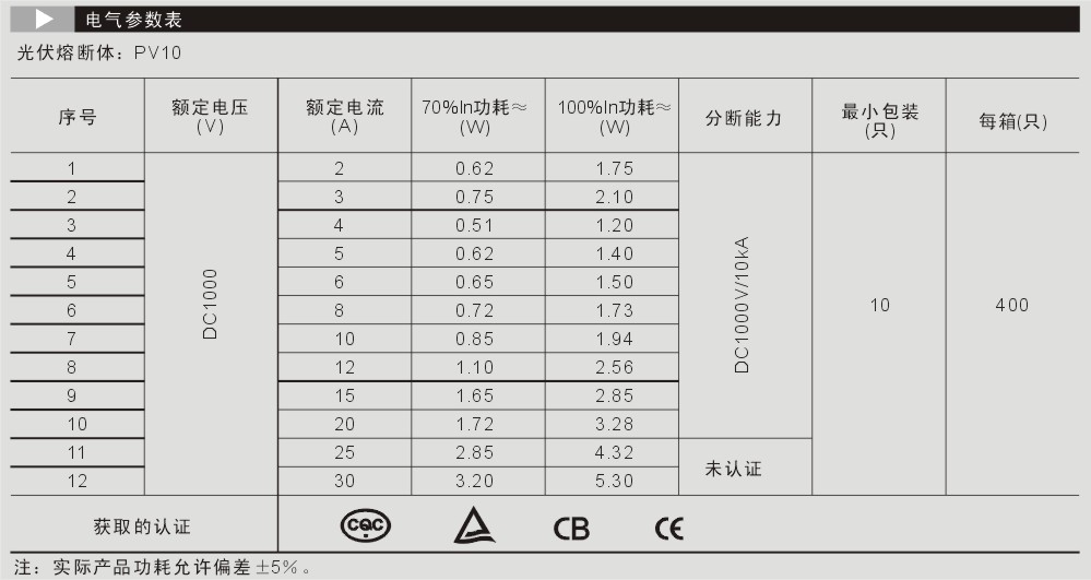 本系列熔斷器適用于太陽能光伏系統(tǒng)(Photovotaic System,簡稱PV),主要應用于光伏匯流箱中,作為光伏發(fā)電器件及其他半導體設備的短路和過載保護,從而起到保護整體太陽能光伏板的作用。