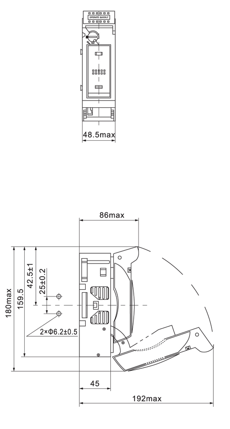 a、開(kāi)關(guān)有底座和罩殼(載熔裝置)兩部分組成,呈封閉結(jié)構(gòu),正面操作,通過(guò)罩殼上的透明板,可以直接觀(guān)察配裝的熔斷體額定數(shù)據(jù)及指示件的動(dòng)作狀態(tài),開(kāi)關(guān)配裝相應(yīng)尺碼的熔斷體;
