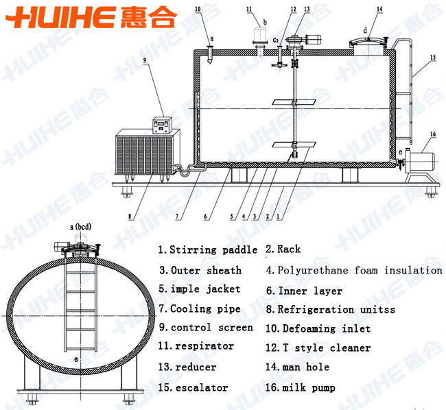 1. Rigid wall uses the advanced plate evaporator to refrigerate milk directly.