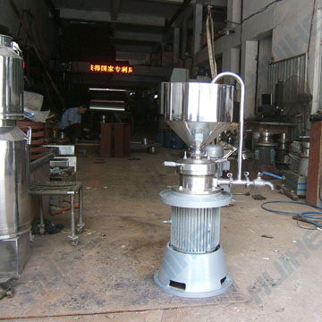 2、機器配立式電動機,膠體磨機體與電機連體同軸心結(jié)構(gòu),故又稱連體式膠體磨。