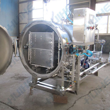 以罐頭為例,殺菌時(shí),由于加熱使罐頭溫度升高,殺菌鍋罐頭內(nèi)壓力會(huì)超過(guò)罐外(在鍋內(nèi))的壓力。為避免殺菌時(shí)玻璃瓶罐內(nèi)增壓而跳蓋,對(duì)馬口鐵罐兩端面凸出,必須施加反壓力,特別是對(duì)需要較高殺菌溫度的肉類(lèi)罐頭更就如此。