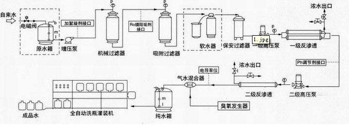 二、瓶裝純凈水生產(chǎn)線工藝流程