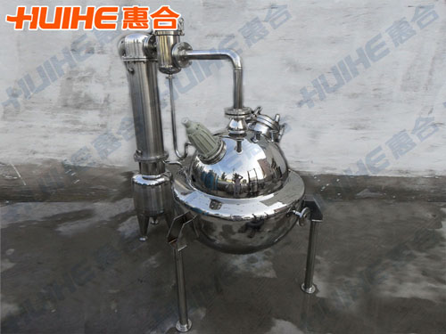 將球形濃縮器的真空口和進(jìn)料口閥門打開,將液料抽入罐內(nèi),罐內(nèi)液面達(dá)到一定高度后,關(guān)閉進(jìn)料閥,并緩緩開放蒸汽進(jìn)口閥門,將罐內(nèi)液體的沸騰數(shù)分鐘后,注意保持該時(shí)的蒸汽壓力和真空程序(亦可通過溫度控制,使沸騰正常進(jìn)行)。蒸餾液體通過分離器,其中部分回流至主體罐內(nèi)。不凝部分通過冷凝器冷凝成液進(jìn)入受料桶,進(jìn)行加收或排放,濃縮結(jié)束后,關(guān)閉真空口,蒸汽口閥門,打開放空口(即直嘴式旋塞閥)常壓后出料。